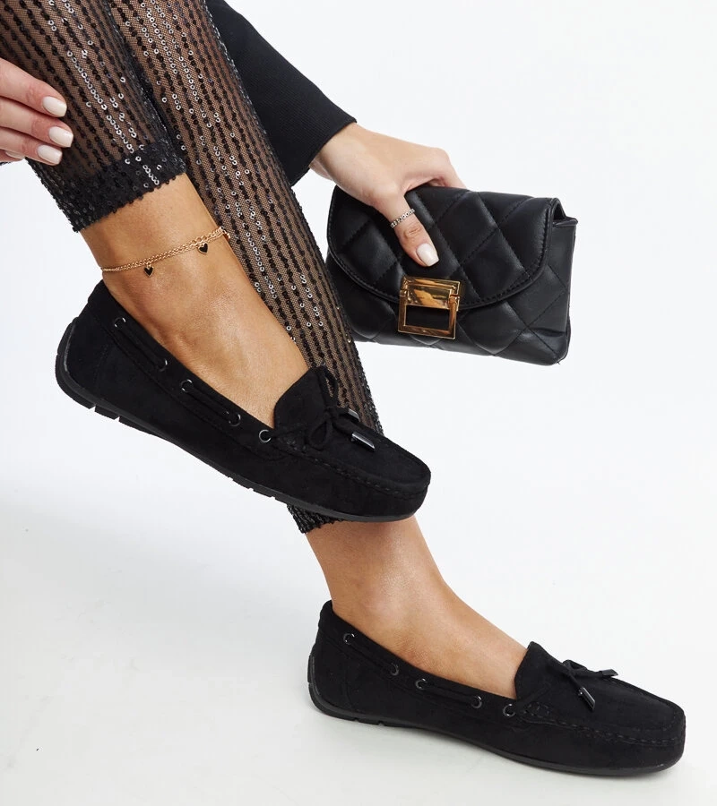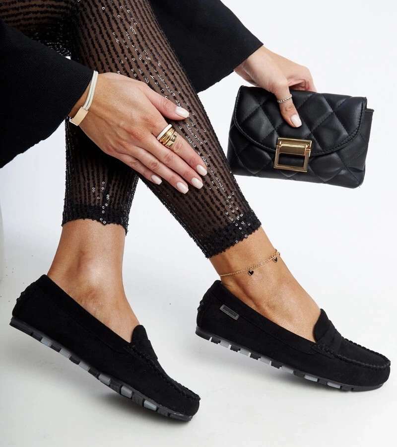 Černé mokasíny se zirkony Hillview
