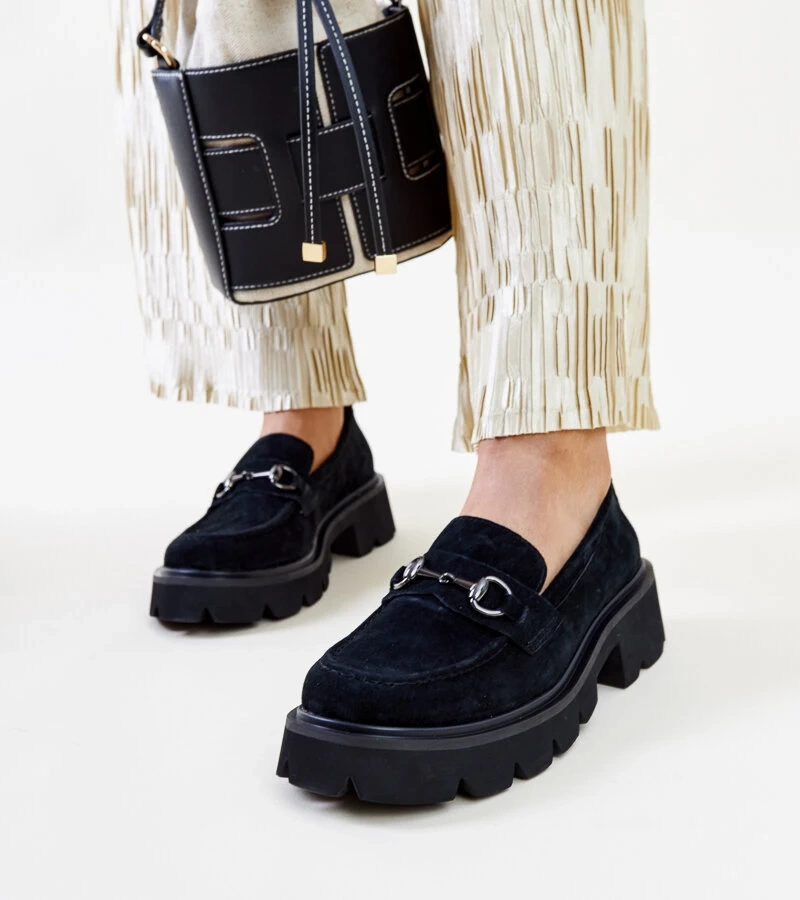 Černé mokasíny na podpatku z ekologického semiše Gaspare