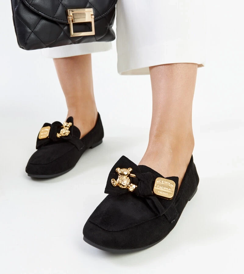Černé mokasíny se řetízkem z ekokoženky Suelli