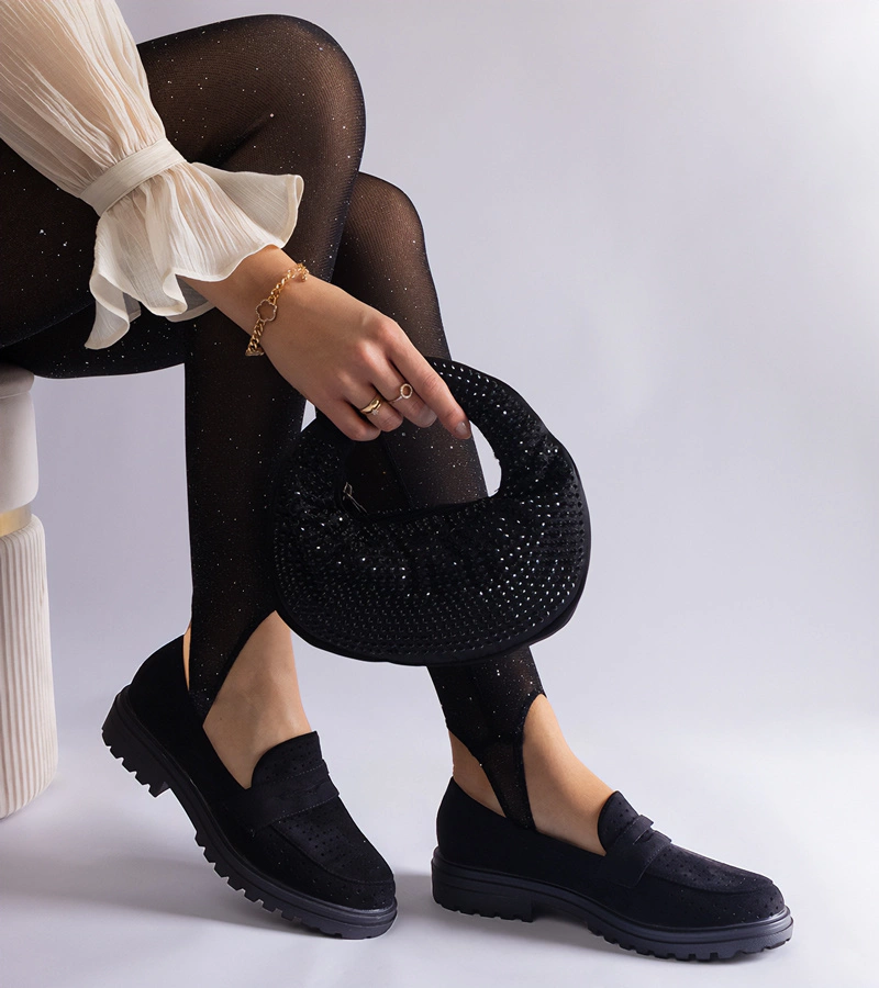 Černé semišové mokasíny na platformě Sakena