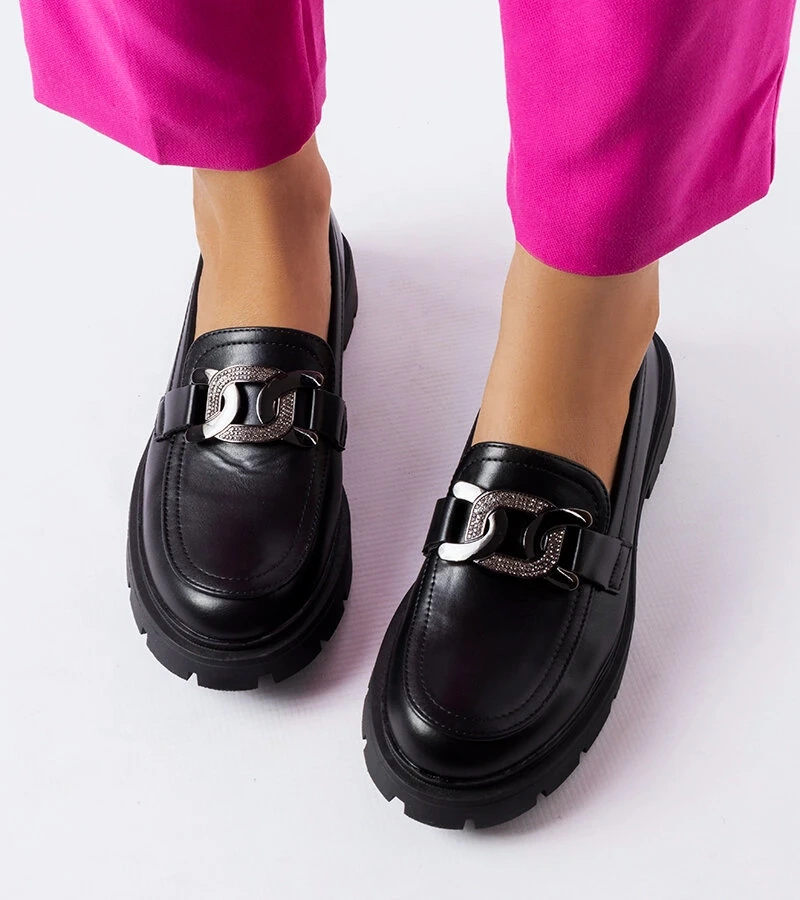 Černé elegantní mokasíny se zirkony Colette