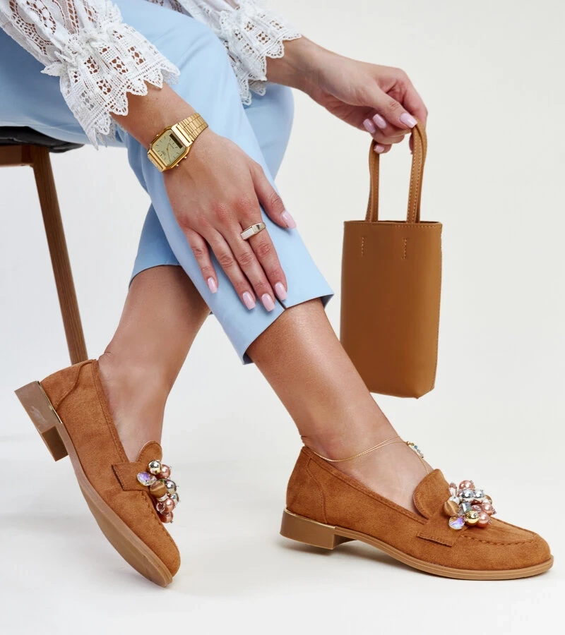 Hnědé mokasíny s řetězem z ekokoženky Suelli