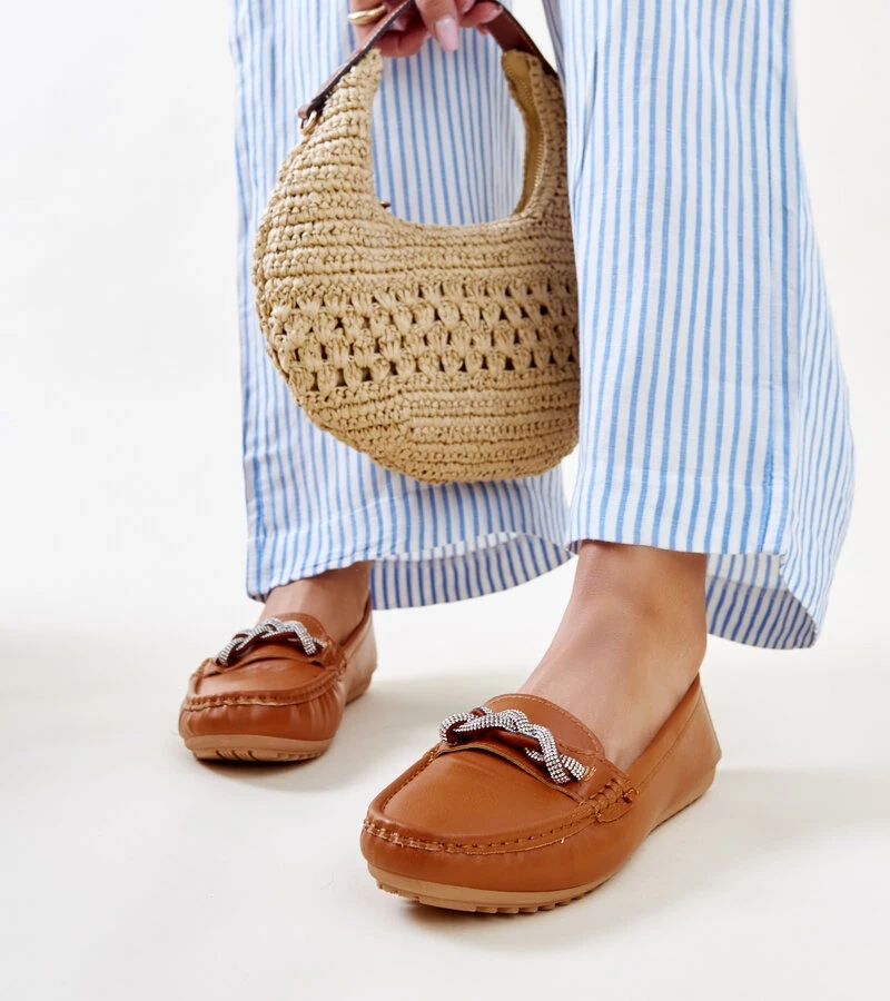Červené mokasíny s dekorativní sponou Adila