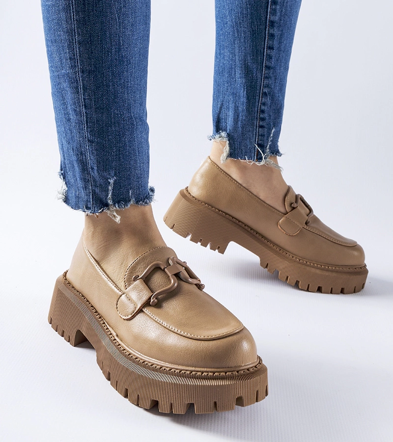 Tmavě béžové mokasíny s přezkou Poissonnier