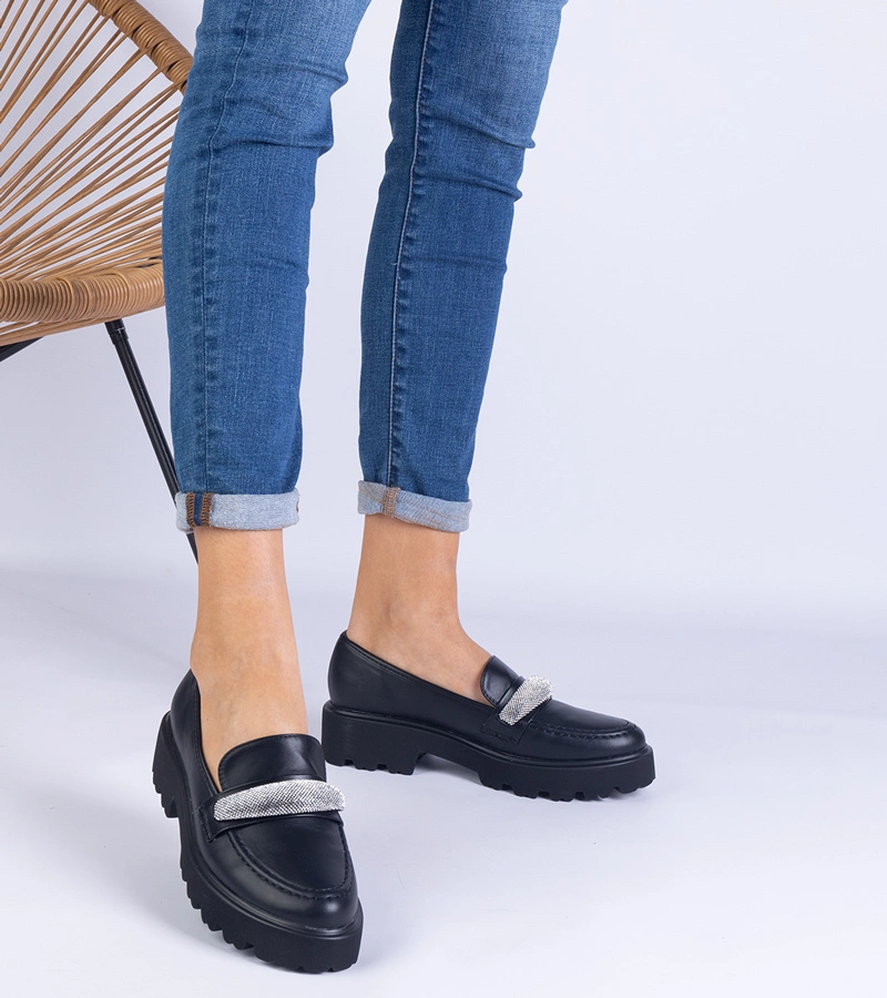 Černé mokasíny s křišťálovou přezkou Mali