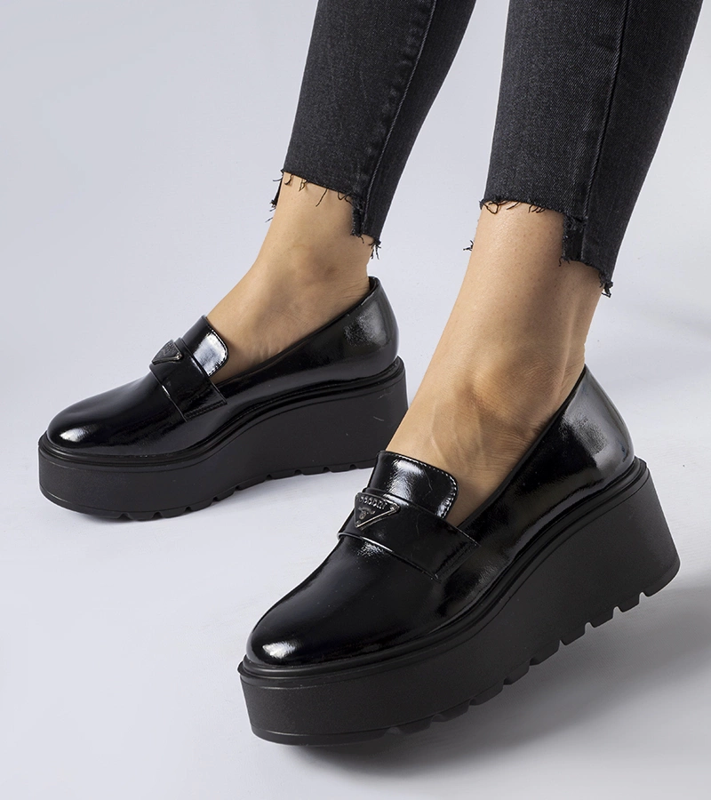 Námořnické modré mokasíny s přezkou na platformě Lerino