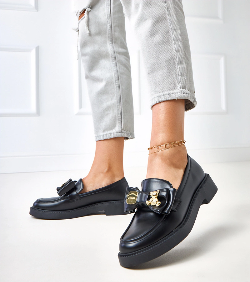 Černé dámské mokasíny se zlatou ozdobou Frada