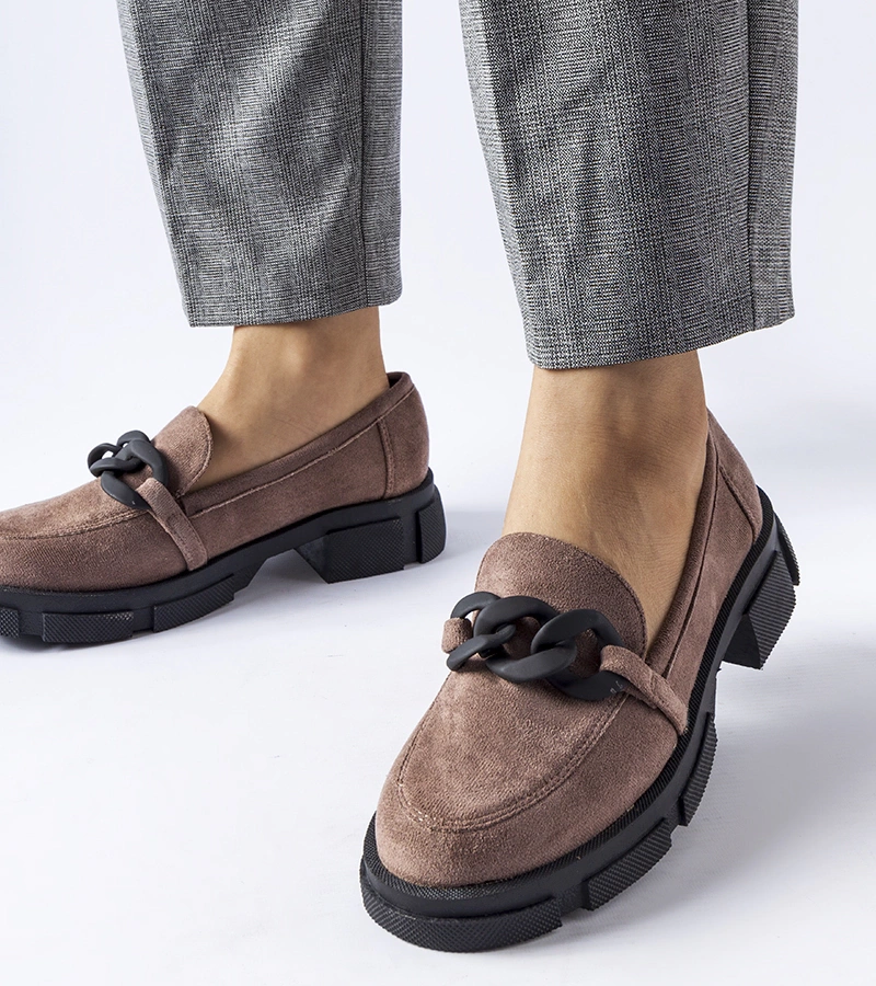 Hnědé mokasíny s řetězem z ekokoženky Suelli