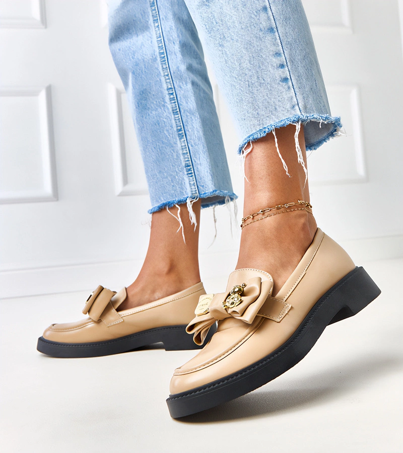 Béžové dámské mokasíny z ekosemiše s mašlí Sarina