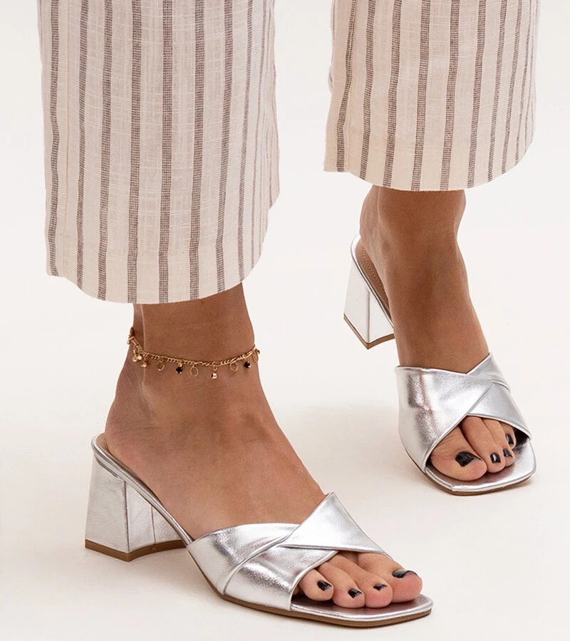 Bílé lakované pantofle s kůžovou stélkou Mancinia