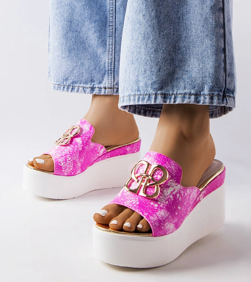 Růžové gumové žabky na platformě od společnosti Elin