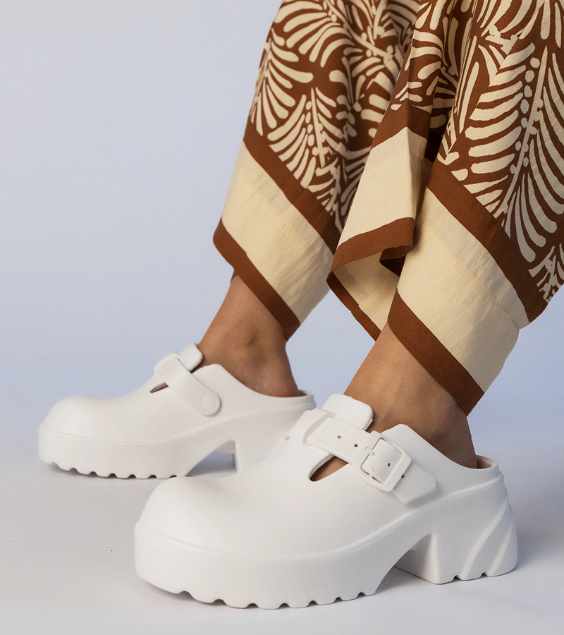 Bílé uzavřené pantofle na platformě zdobené ozdobami Aria