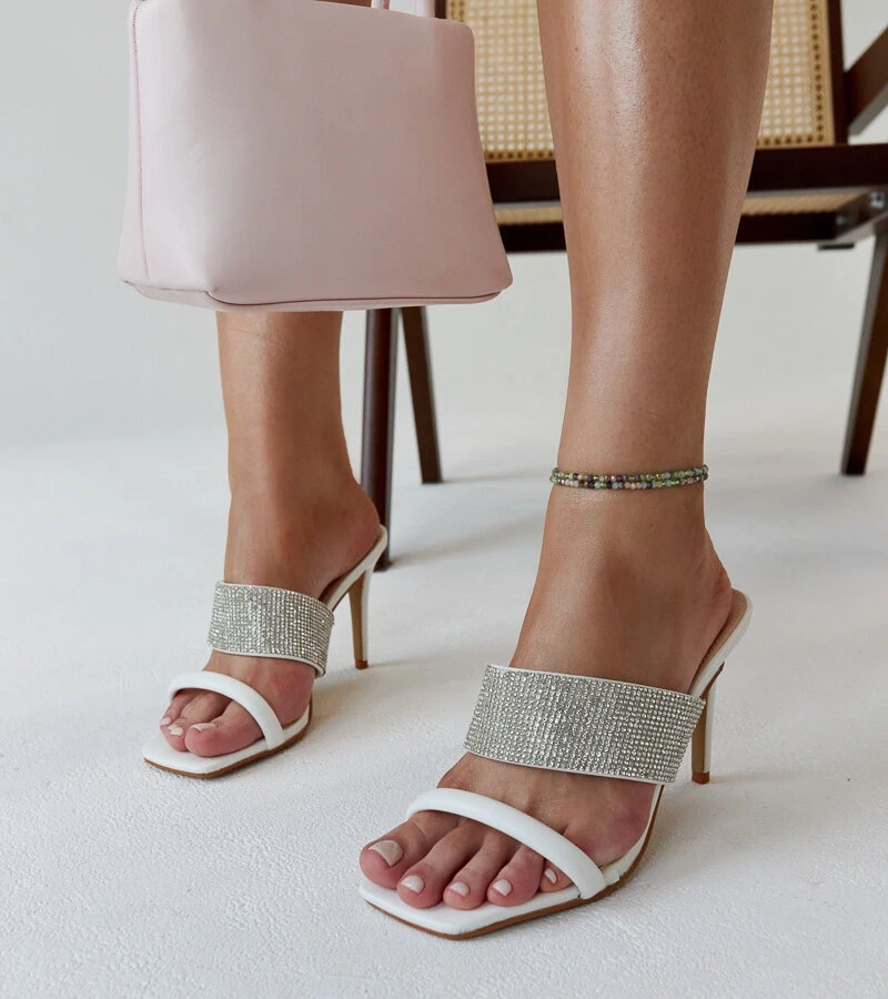 Bílé sandály na podpatku zdobené zirkony Adiam