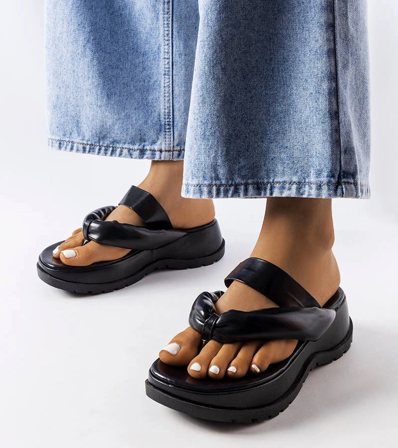 Černé gumové žabky na platformě od společnosti Elin