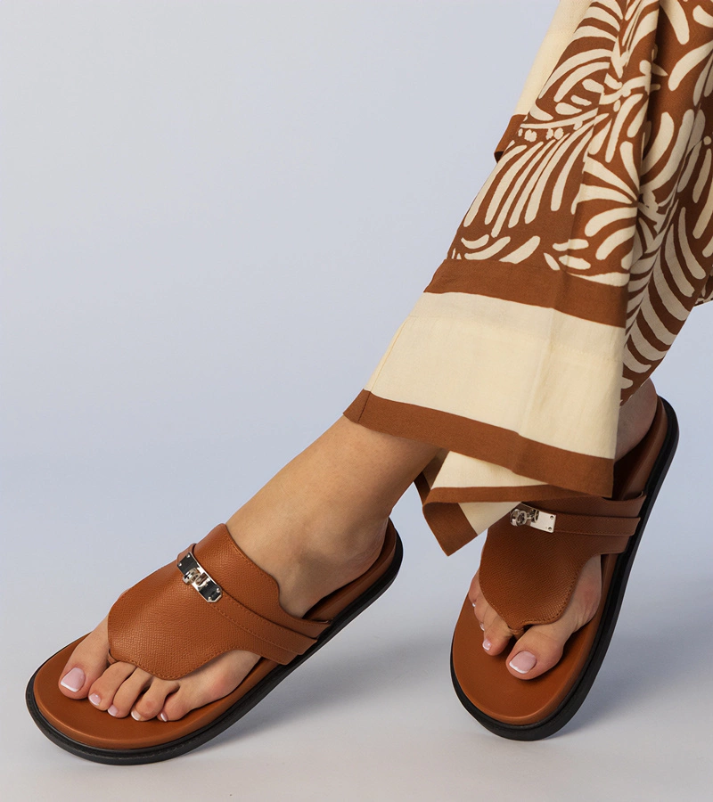 Tmavobéžové uzavřené pantofle na platformě zdobené odznaky Aria