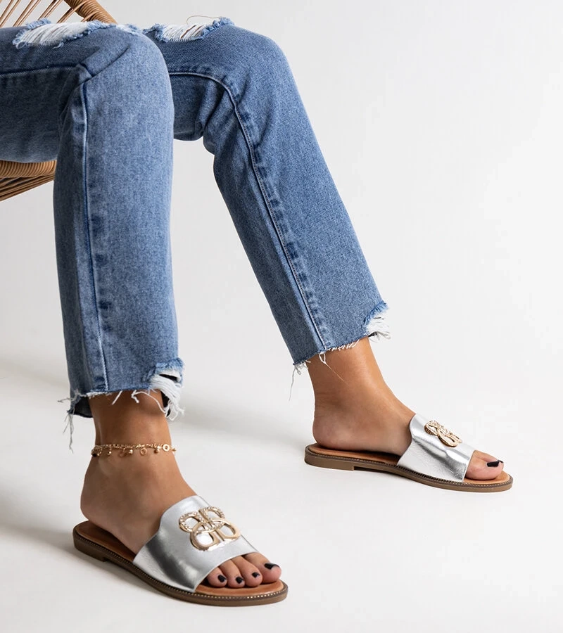 Stříbrné pantofle s dekorativní sponkou Bera