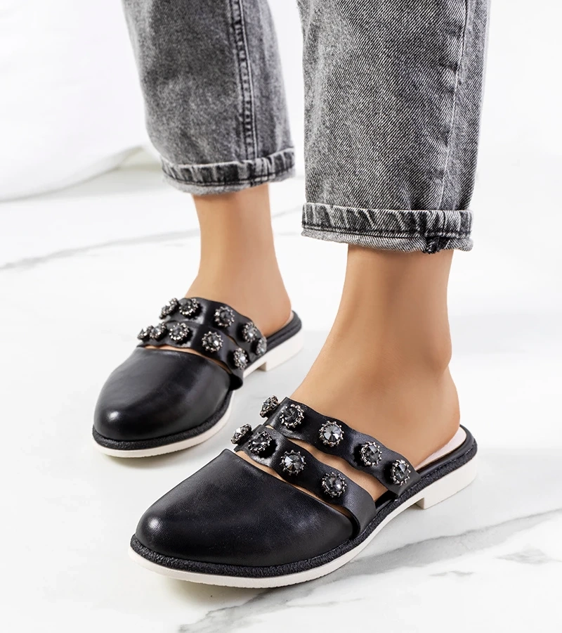 Černé žabky zdobené cvočky Asselt