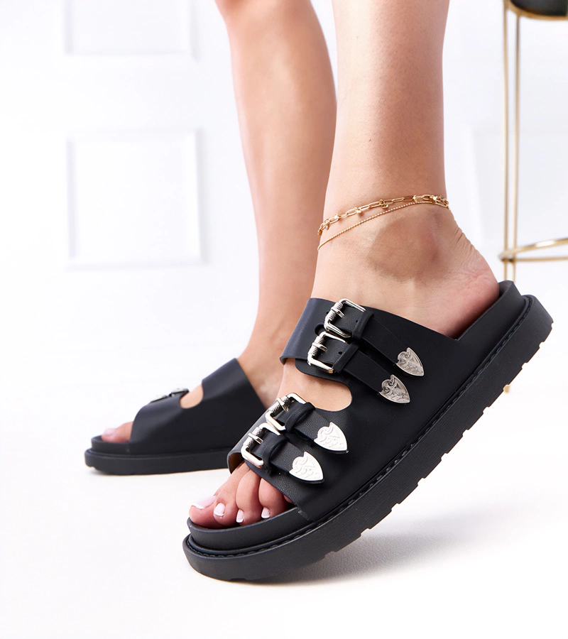 Černé dámské pantofle s ozdobnými přezkami Fetta