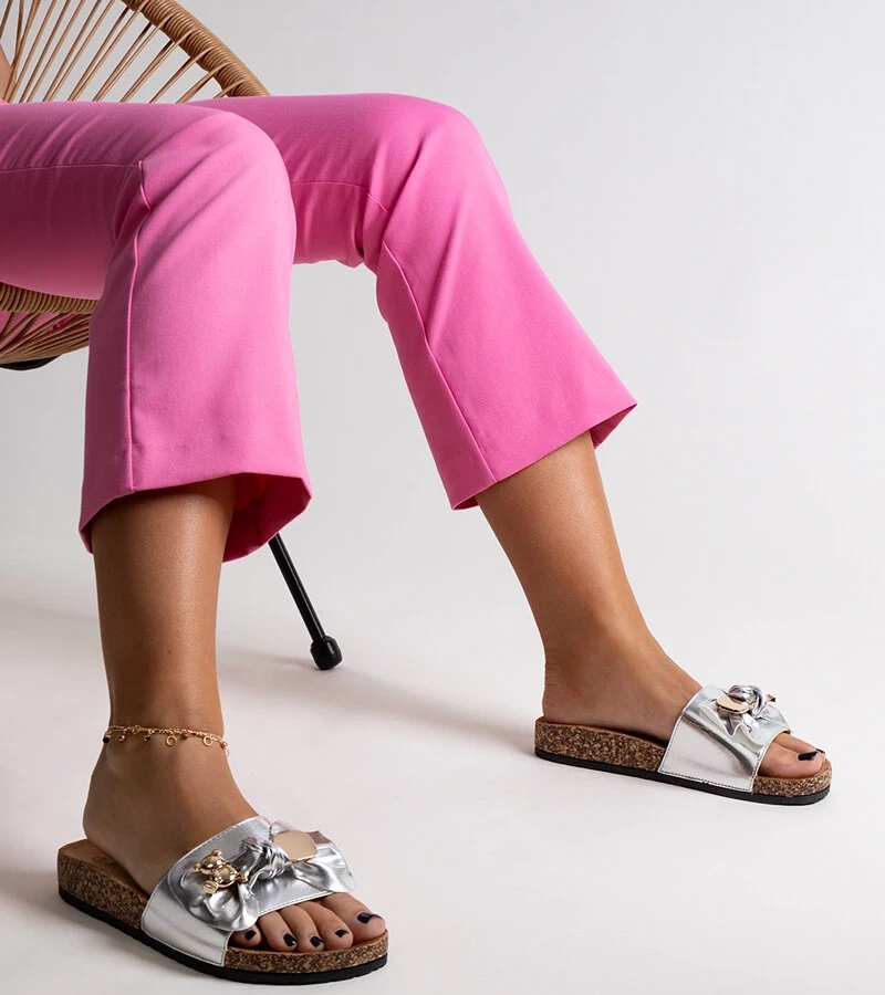 Stříbrné pantofle s dekorativní přezkou Ganea