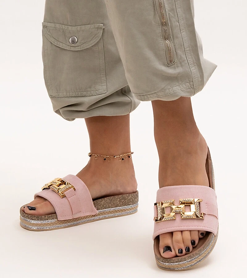 Tmavě růžové pantofle na tlusté podrážce Elina