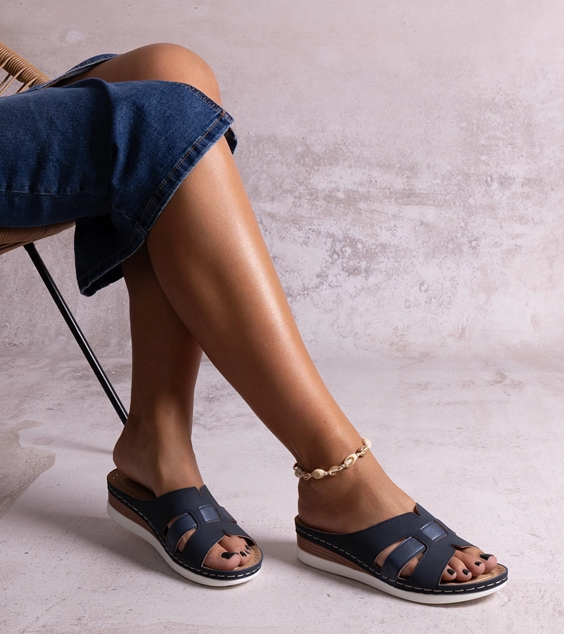 Modré lehké pantofle na nízkém podpatku od Mifsuda