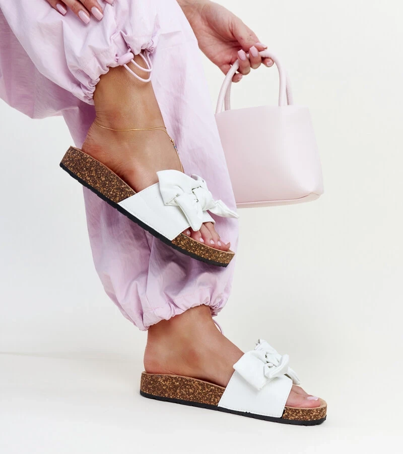 Bílé pantofle na korkové podrážce s mašlí od Petresa
