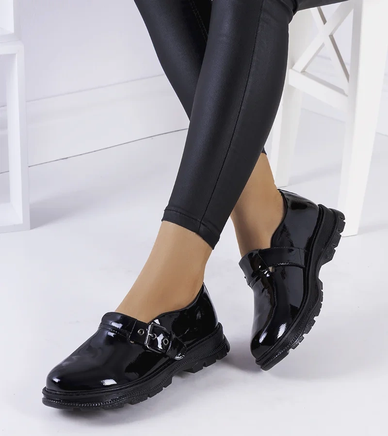 Černé lakované boty s přezkou Ancel