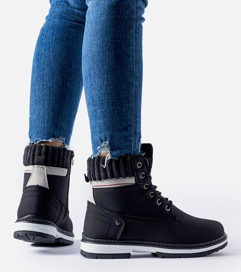 Černé zateplené kotníčkové boty se čtvercovým podpatkem Boris.
