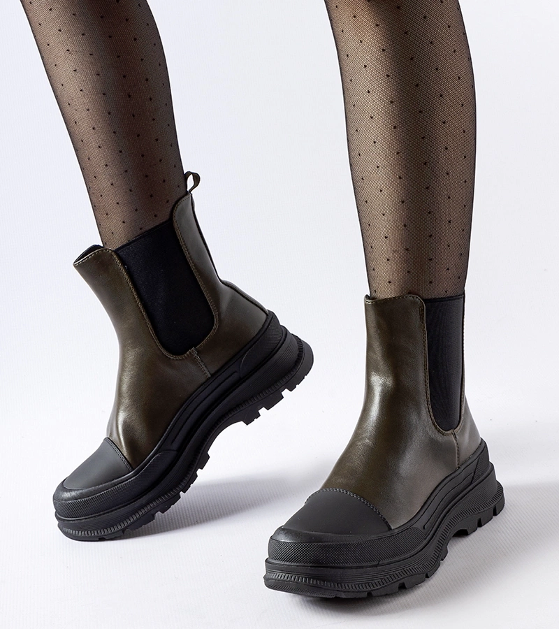 Tmavě zelené botky s jasnou tlustou podrážkou Vitto