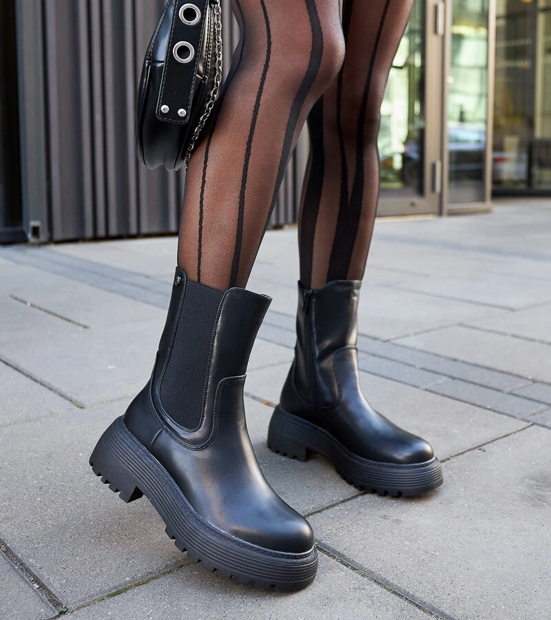 Černé kotníkové boty na masivní podrážce Mafalda