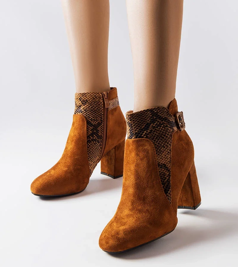 Hnědé boty z eko semiše s hadí kůží Daamen