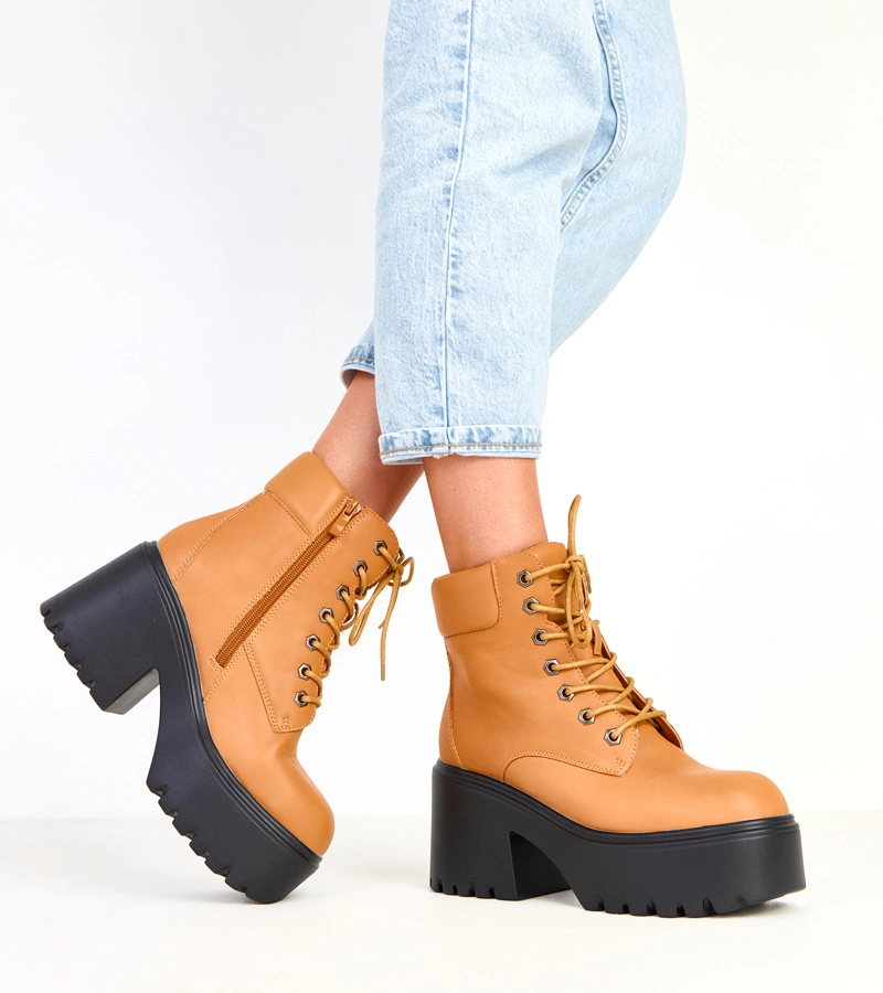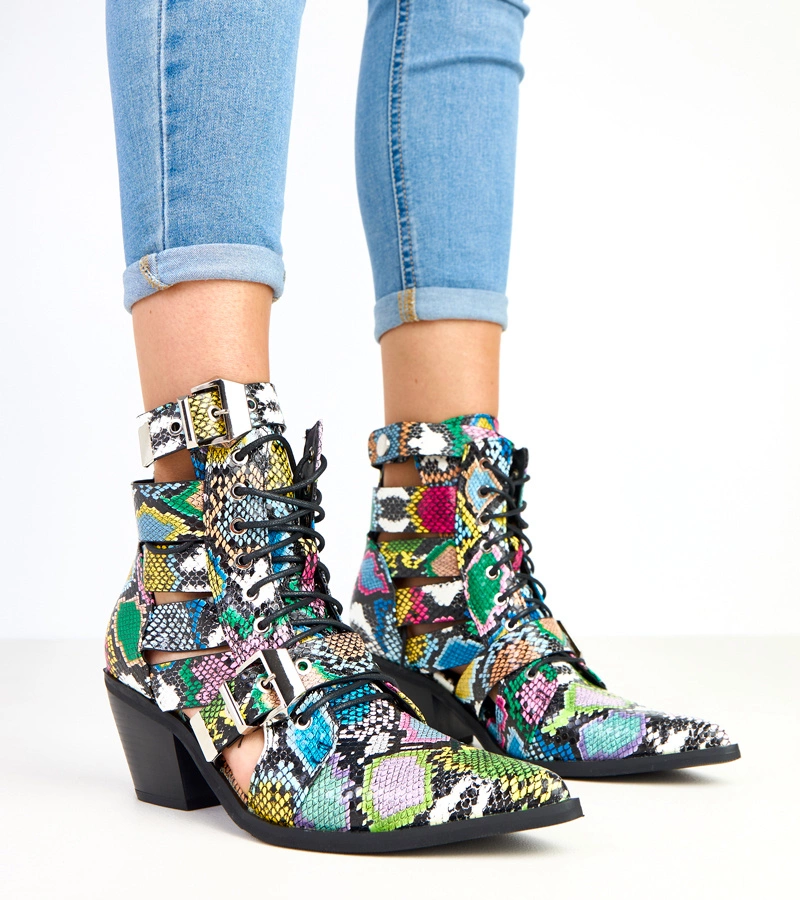 Hnědé kotníkové boty na platformě s ozdobnými přezkami Shalay