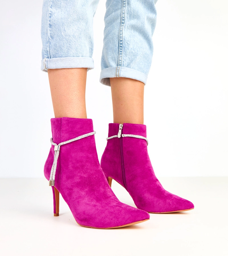 Fialové kotníkové boty na jehlovém podpatku s ozdobným řetízkem Ivey
