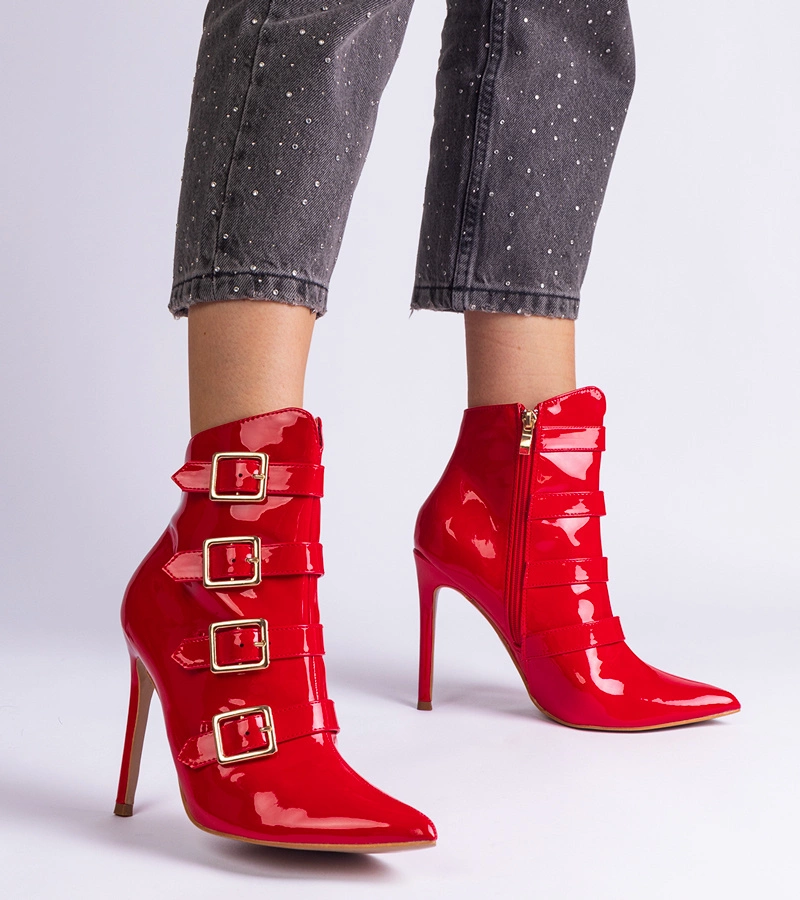 Červené lakované kotníkové boty na jehlovém podpatku Adriana