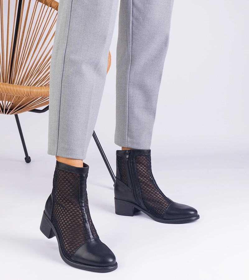 Hnědé síťované kotníkové boty na podpatku Melarka