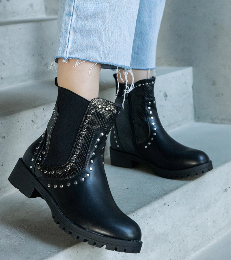 Černé kotníkové boty na platformě s ozdobnou podrážkou Asevie