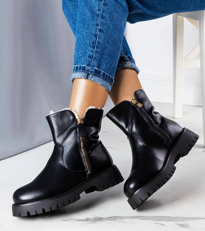 Černé kotníkové boty na platformě s ozdobným zipem Luisa