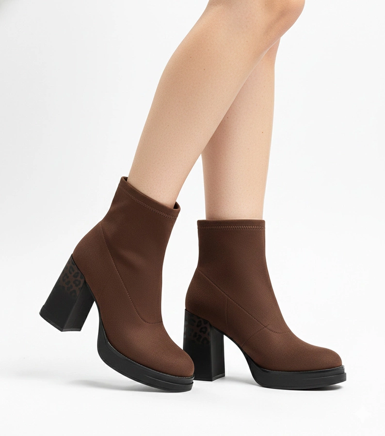 Hnědé kotníkové boty na masivním podpatku a platformě Janja