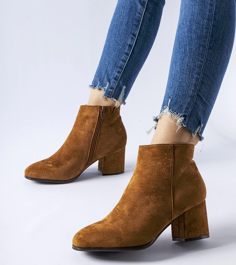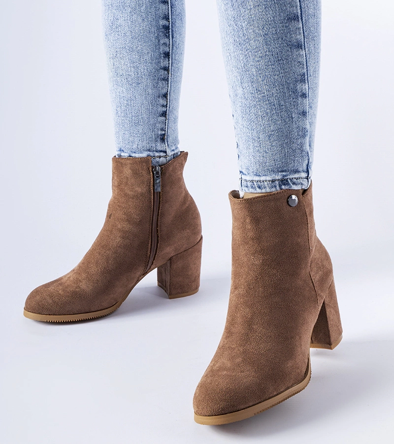 Hnědé semišové kotníčkové boty na podpatku Romilda