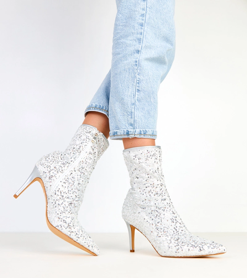Stříbrné kotníkové boty s flitrovým zakončením na jehlovém podpatku Venda
