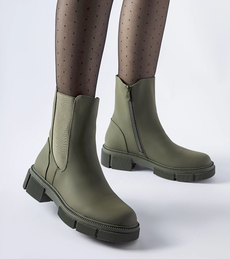 Tmavě zelené botky s jasnou tlustou podrážkou Vitto