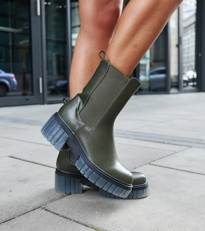 Zelené kotníčkové boty z ekologického semiše na nízkém sloupku Sovere