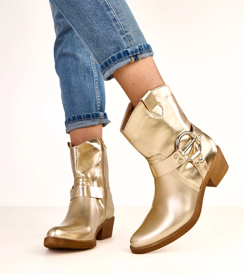 Zlaté dámské kotníkové kovbojské boty na podpatku metalické Madeira
