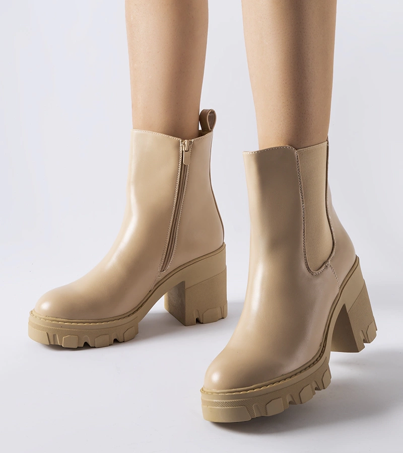 Bežové zateplené kotníčkové boty na masivním sloupku Adamo