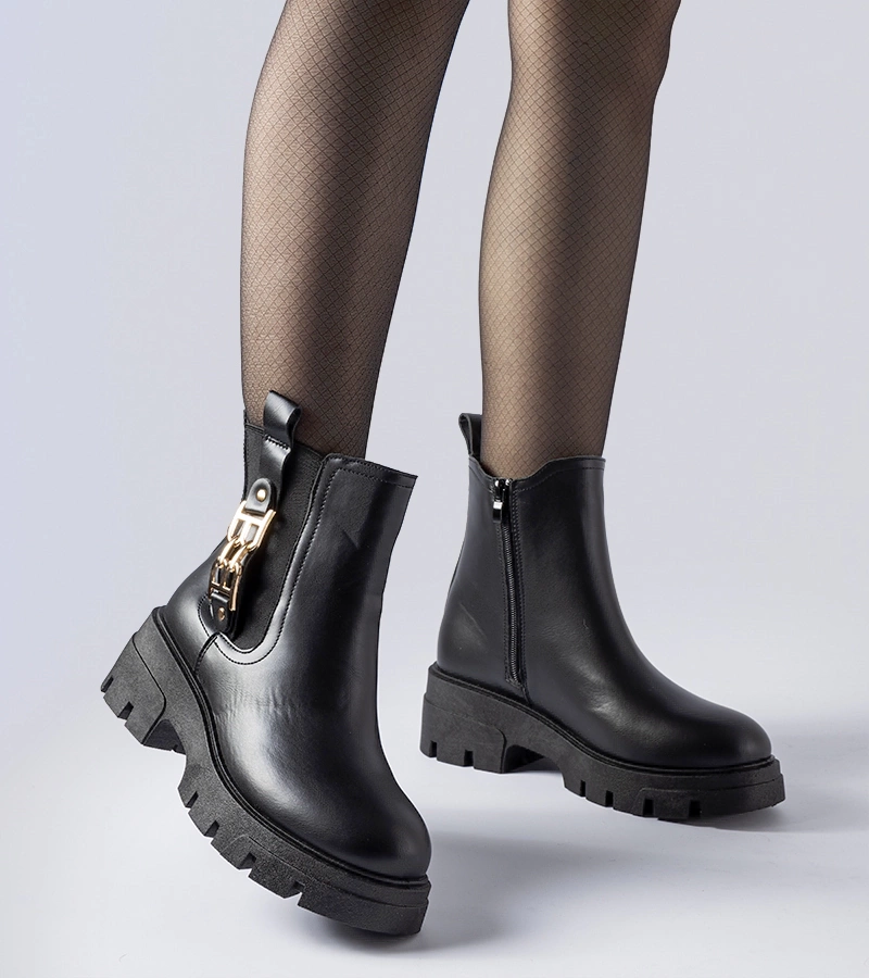 Černé masivní kotníkové boty s ozdobnou sponou Nuovo