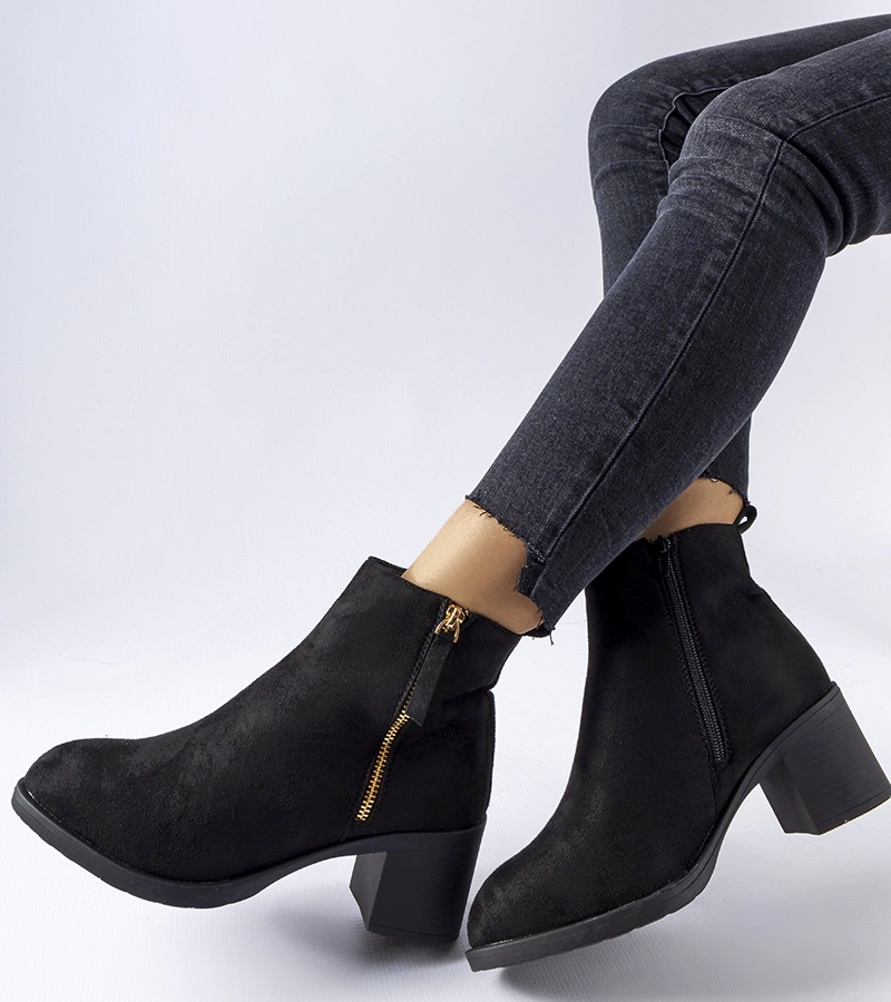 Černé kotníčkové boty na nízkém podpatku z ekokoženky Ivano