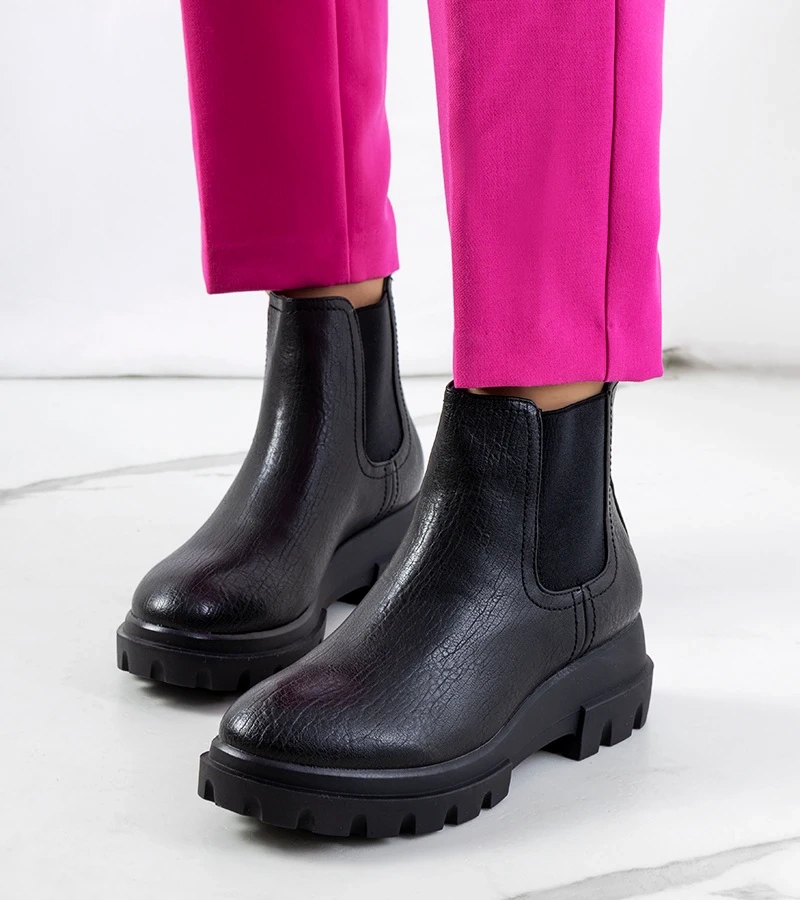 Černé masivní boty na platformě se scvrknutím Sholla.