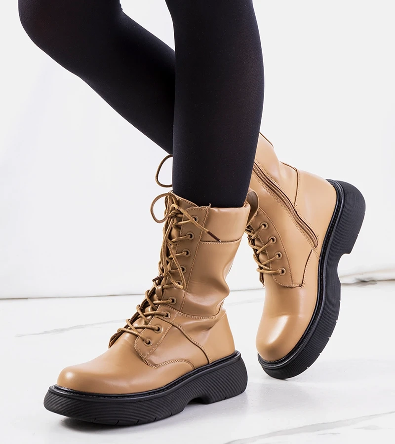 Jasně béžové masivní boty na platformě se sepraným vzhledem Sholla.