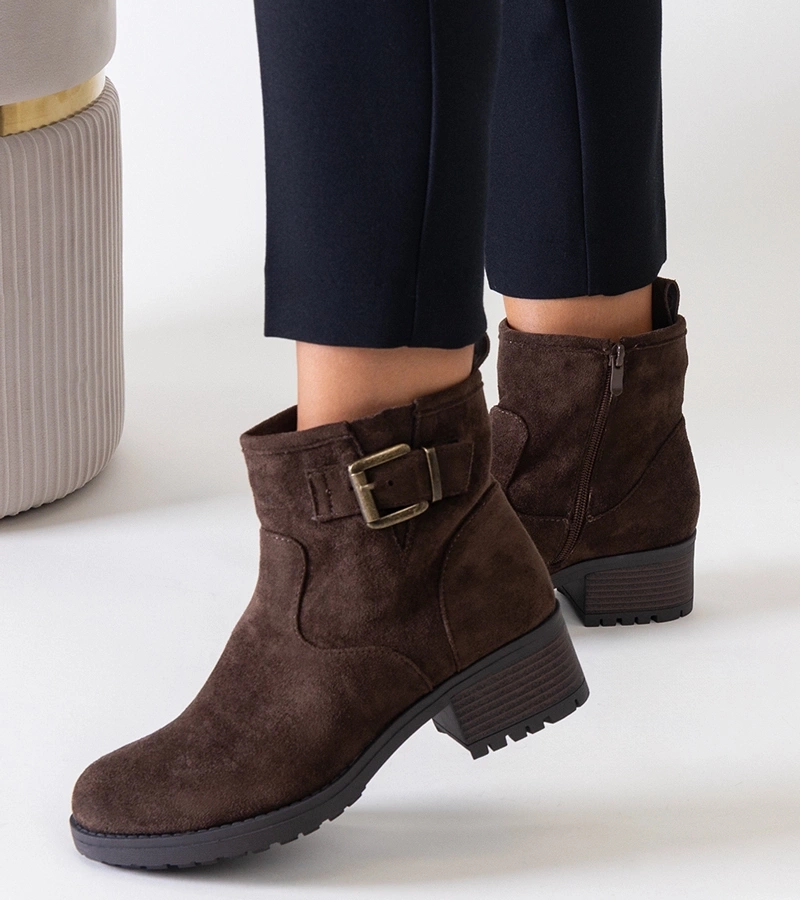 Hnědé klasické kotníkové boty z eko-sametu Pereia.