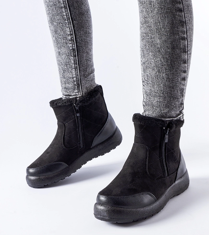 Černé zateplené kotníkové botky na nízkém podpatku Cotti